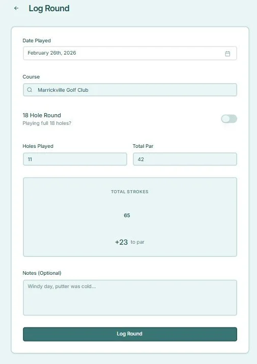 Absolutely. You can track 6, 9, 12, or 18 holes. Pure Golf Flow normalizes scores per hole, so shorter or partial rounds still count toward your overall progress and improvement tracking.